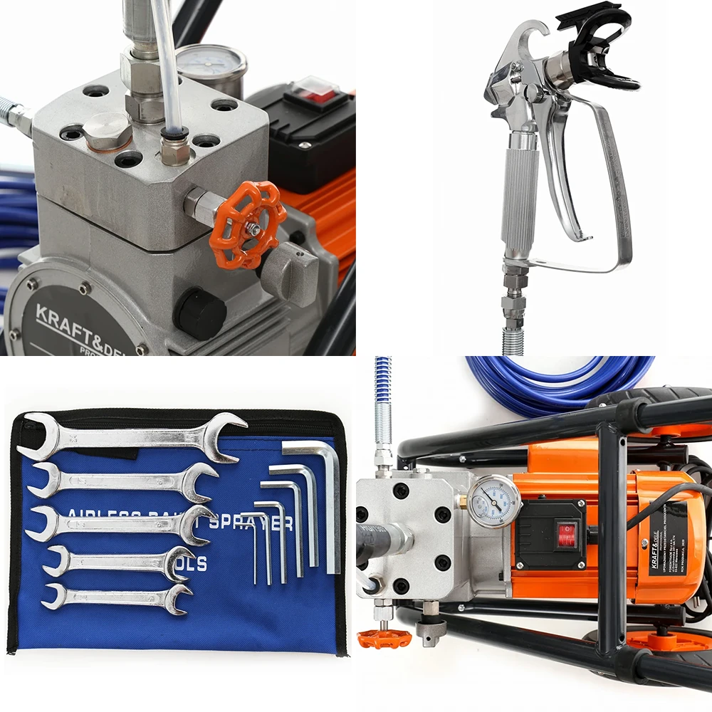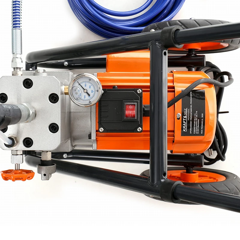 Agregat malarski KRAFT&DELE KD1745 przeznaczony jest do malowania niemal wszystkich typowych podłoży budowlanych, zarówno wewnętrznych, jak i zewnętrznych – w budynkach mieszkalnych oraz przemysłowych. Doskonale sprawdza się do aplikacji farb emulsyjnych, akrylowych, lateksowych, bejc, lakierów wodnych oraz emalii. Technologia natrysku hydrodynamicznego polega na sprężeniu farby i nanoszeniu jej bez udziału powietrza bezpośrednio na powierzchnię, co znacząco redukuje straty materiału w porównaniu do tradycyjnego malowania wałkiem czy pędzlem. Zastosowanie tego rozwiązania pozwala na nawet czterokrotne skrócenie czasu pracy przy malowaniu dużych powierzchni w jednym kolorze.