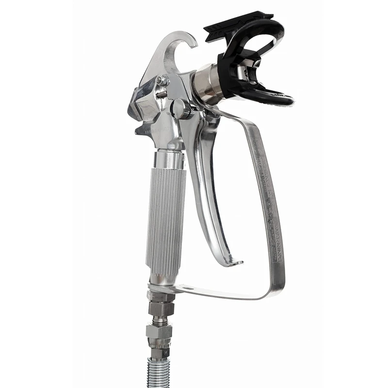 W przypadku chwilowej przerwy w pracy i zatrzymania podawania farby, zaleca się zablokowanie spustu pistoletu oraz zanurzenie dyszy w odpowiednim rozpuszczalniku – lub w wodzie, w przypadku stosowania farb wodnych. Działanie to skutecznie zapobiega zasychaniu farby wewnątrz układu. Przed każdym czyszczeniem lub demontażem urządzenia należy pamiętać o zwolnieniu ciśnienia w agregacie, co stanowi istotny element bezpieczeństwa pracy oraz pozwala uniknąć uszkodzeń podzespołów.