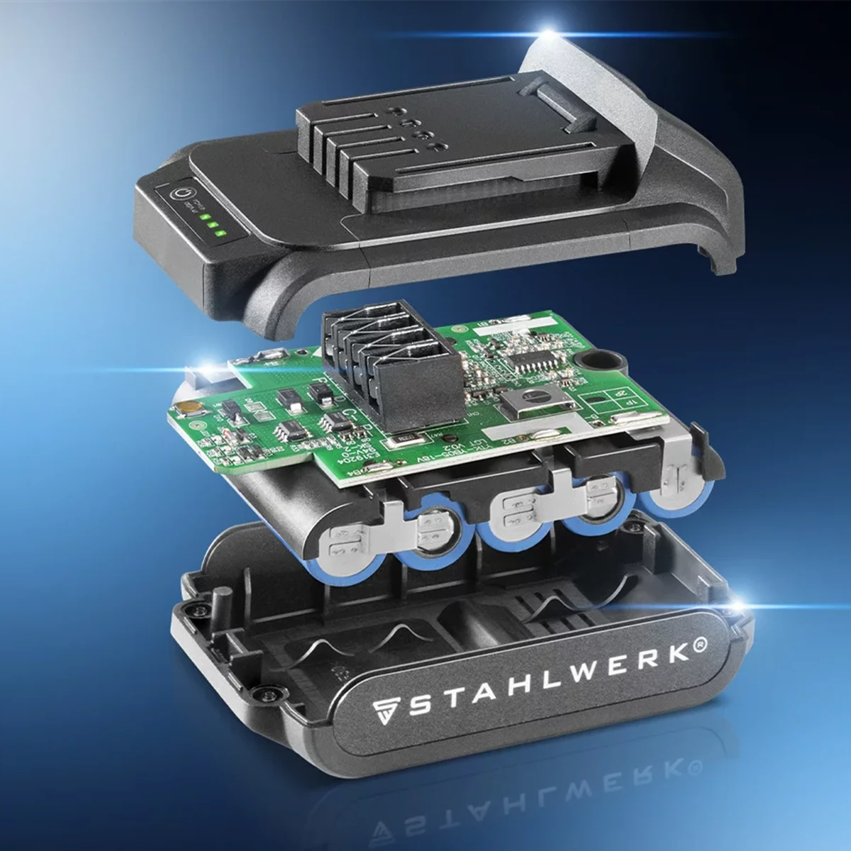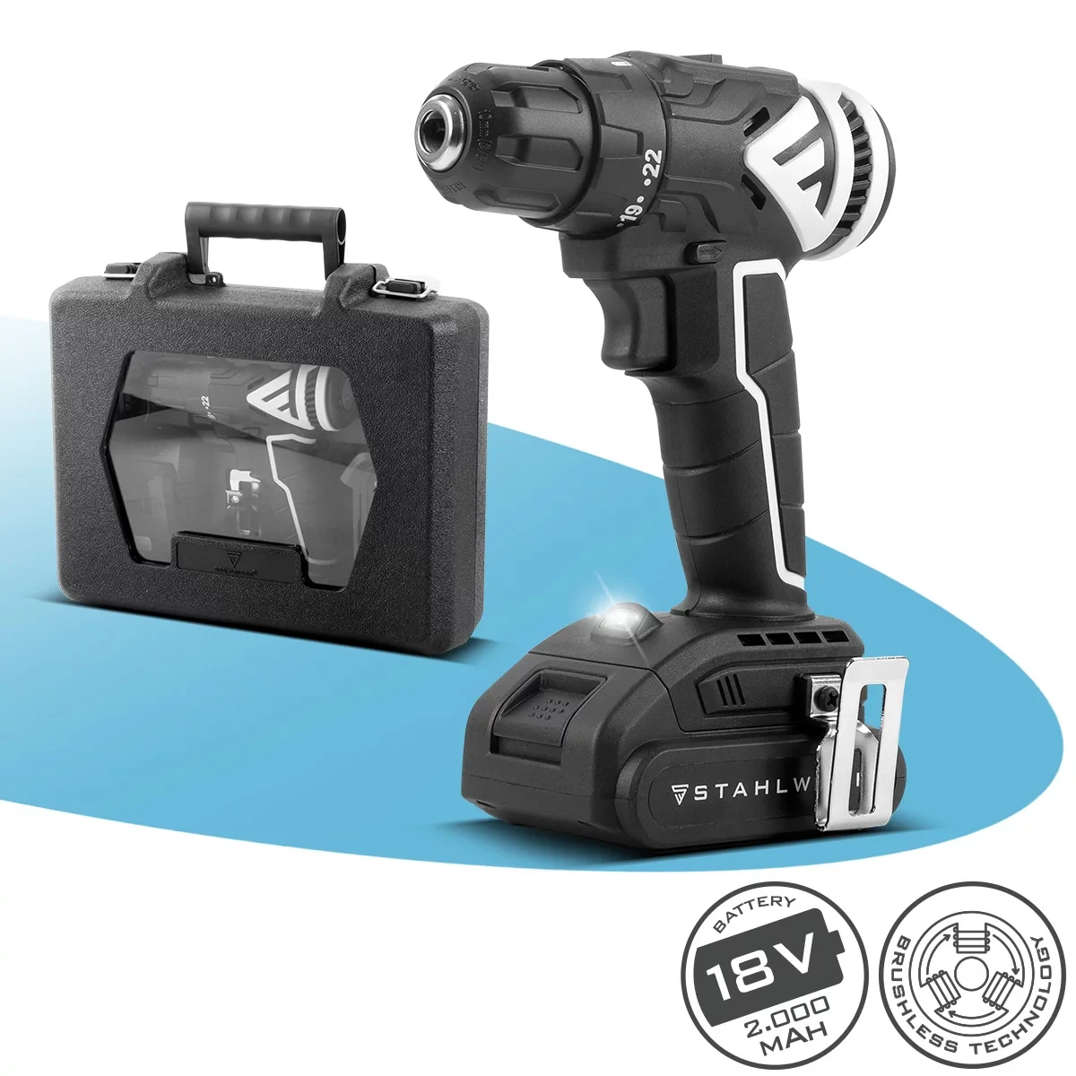 • 1 x Urządzenie główne: Bezszczotkowa akumulatorowa wiertarko-wkrętarka STAHLWERK ABS-18 ST.