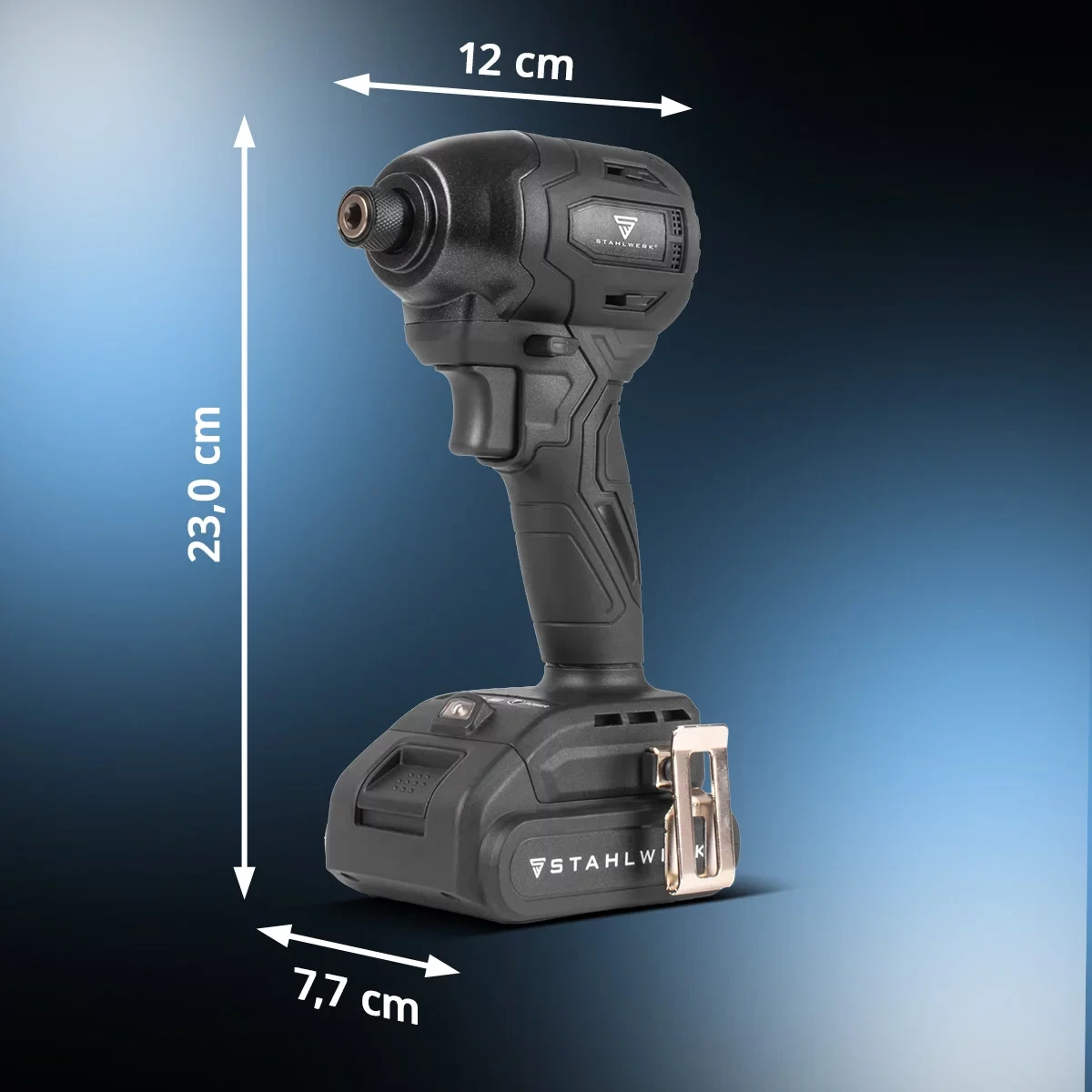 - Kompaktowość i niska waga: Akumulatorowy klucz udarowy STAHLWERK ADS-190 ST łączy małe wymiary z niską wagą. Idealny do pracy w ciasnych przestrzeniach i dłuższych sesjach roboczych.