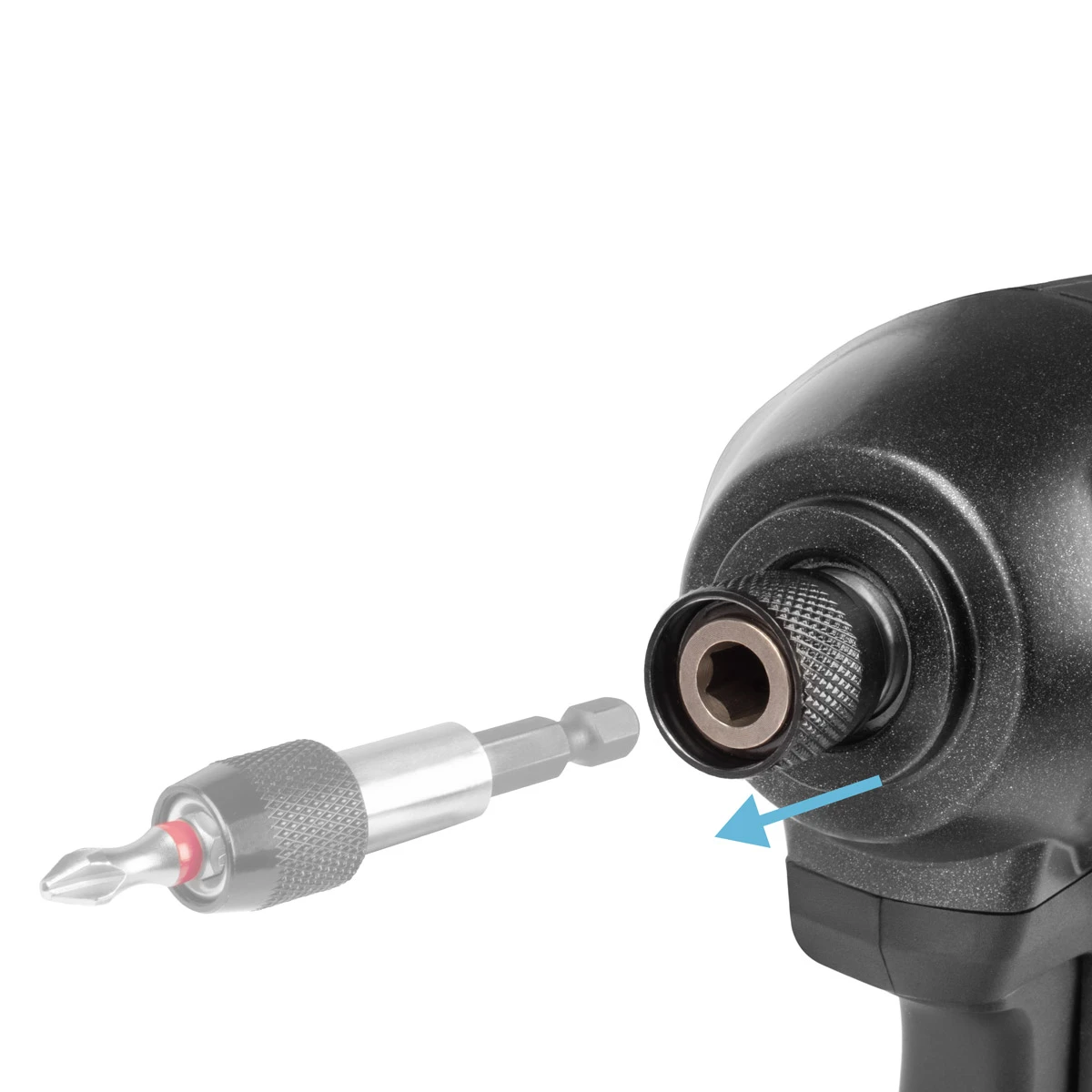 - Wygodna obsługa bitów: Magnetyczne gniazdo ¼" z funkcją „pull-out” umożliwia szybką i prostą wymianę bitów. Obroty w prawo i w lewo z hamulcem silnika zapewniają pełną elastyczność wkręcania i wykręcania.