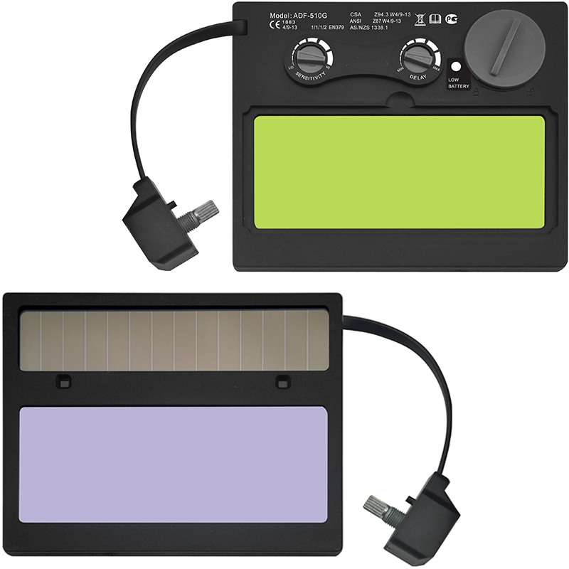 Możliwość regulacji parametrów zapewniają pokrętła przystosowane do precyzyjnej regulacji stopnia zaciemnienia 4/9-13 DIN, czułości reakcji fotoczujników na intensywność łuku podczas spawania oraz czasu opóźnienia przełączania stanu ciemny/jasny. Ma to istotny wpływ na efektywność prowadzonych prac, w różnych warunkach, dzięki łatwym i szybkim ustawieniom. Regulację posiada również 4-ramienne nagłowie, które pozwala na dopasowanie przyłbicy do kształtu głowy użytkownika, a system odchylania zmienia środek ciężkości przyłbicy względem głowy.