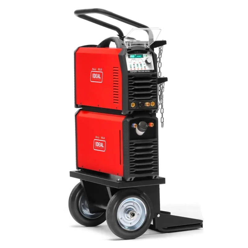 Urządzenie zostało wyposażone w uchwyt TIG SR 18. Pod tym kątem stworzono zestaw z wydajną chłodnicą, która znajduje się w pakiecie. Dodatkowym atutem jest mobilność - chłodnica oraz źródło transportowana jest na podwoziu jezdnym z miejscem na butle.