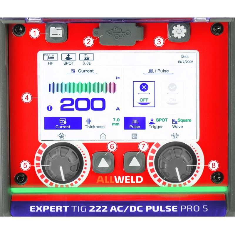 Spawarka Ideal EXPERT TIG 222 ACDC PFC PULSE Pro5 LCD posiada nowoczesny, dotykowy panel LCD, który ułatwia szybkie ustawienie wszystkich parametrów pracy. Wyświetlacz prezentuje w przejrzysty sposób przebieg całego cyklu spawania, co pomaga uniknąć pomyłek i pozwala precyzyjnie dopasować ustawienia do konkretnego zadania. Intuicyjne menu umożliwia błyskawiczne przełączanie funkcji oraz dostęp do zapisanych programów, co znacząco skraca czas przygotowania do pracy i ułatwia obsługę nawet mniej doświadczonym użytkownikom.
