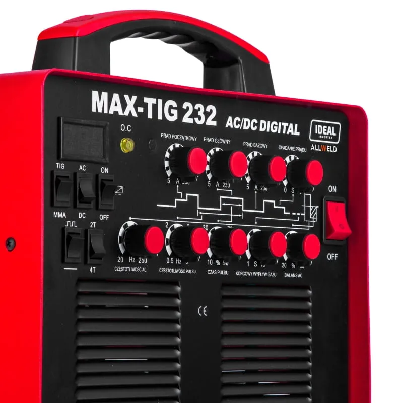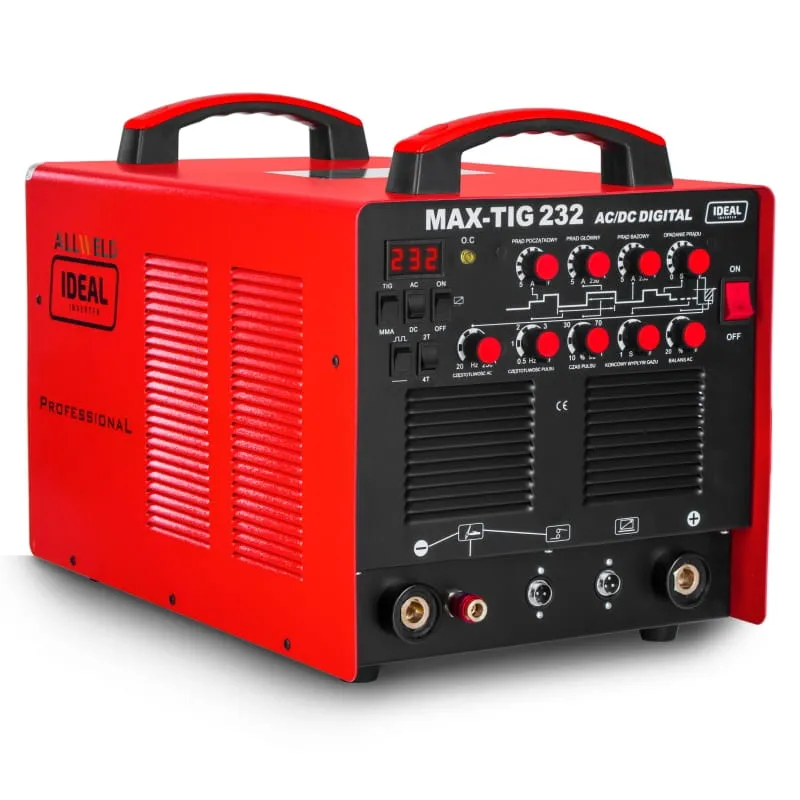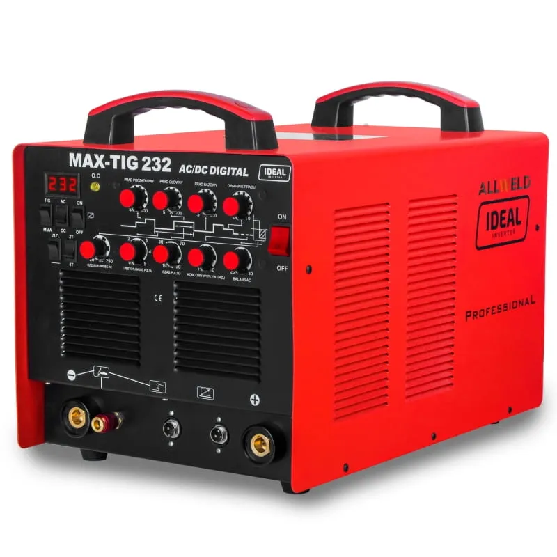 Inwertor spawalniczy IDEAL MAX-TIG 232 AC/DC DIGITAL to spawarka przeznaczona do spawania prądem stałym (DC) oraz zmiennym (AC) metodą TIG przy bezdotykowym (HF) zajarzaniu łuku oraz metodą MMA elektrodą otuloną prądem stałym. Inwertor posiada szereg funkcji ułatwiających spawanie takich jak: spawanie PULS, ARC FORCE, HOT START.