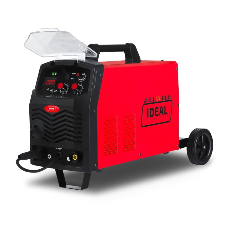 Posiada możliwość zmiany biegunowości uchwytu do spawania drutem samoosłonowym. Zasilanie jednofazowe. Maksymalna szpula z drutem: 5 kg. Uchwyt spawalniczy o długości 2,2 m zamontowany na stałe. Płynna regulacja prądu spawania. Przy spawaniu metodą MIG-MAG możliwość regulacji: prądu spawania, prędkości podawania drutu. Ideal 200 umożliwia spawanie drutem stalowym 0,6-0,8 mm oraz drutem samoosłonowym 0,8-0,9 mm.