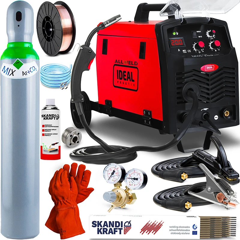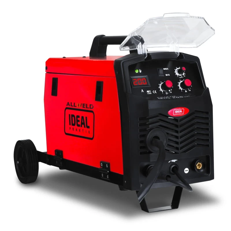 Mini spawarka Ideal 200 umożliwia spawanie metodą MIG/MAG znajdzie on zastosowanie w warsztatach ślusarskich, warsztatach naprawczych pracach montażowych itp. Model PRAKTIK 200 przystosowany jest do łączenie stali niskostopowych, niestopowych, jak też: magnezu, aluminium, niklu, miedzi i ich stopów. MIG/MAG to metoda spawania wykorzystująca łuk elektryczny wytwarzany pomiędzy elektrodą topliwą (którą jest drut podawany w sposób ciągły) a spawanym materiałem. Proces ten odbywa się w osłonie gazów aktywnych lub obojętnych, a najczęściej w tym celu wykorzystuje się: dwutlenek węgla, hel lub argon. W ten sposób powstają trwałe, dobrej jakości spoiny.