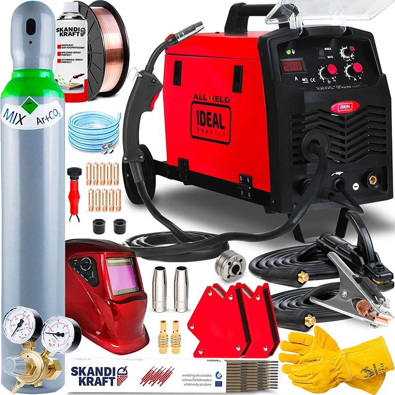 Mini spawarka Ideal 200 umożliwia spawanie metodą MIG/MAG znajdzie on zastosowanie w warsztatach ślusarskich, warsztatach naprawczych pracach montażowych itp. Model PRAKTIK 200 przystosowany jest do łączenie stali niskostopowych, niestopowych, jak też: magnezu, aluminium, niklu, miedzi i ich stopów. MIG/MAG to metoda spawania wykorzystująca łuk elektryczny wytwarzany pomiędzy elektrodą topliwą (którą jest drut podawany w sposób ciągły) a spawanym materiałem. Proces ten odbywa się w osłonie gazów aktywnych lub obojętnych, a najczęściej w tym celu wykorzystuje się: dwutlenek węgla, hel lub argon. W ten sposób powstają trwałe, dobrej jakości spoiny.