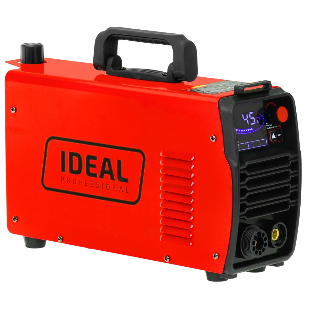 Ideal Tecno Plasma 45 LED to mocna przecinarka plazmowa, która łączy zaawansowaną technologię Blow Back z łukiem pilotującym, kompaktową konstrukcję i intuicyjny panel sterowania. Zaprojektowana została do rozcinania metali przewodzących prąd, takich jak stal, stal nierdzewna, aluminium, mosiądz i miedź. Oferuje maksymalną grubość cięcia rozdzielającego 18 mm / jakościowego 14 mm przy prądzie 20–45 A. Jest lekka (7 kg) i mobilna, idealna zarówno do warsztatów, jak i prac terenowych.
