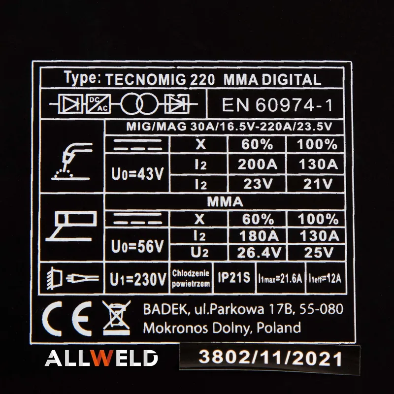 Spawarka Migomat Ideal MIG Tecnomig 220 MMA Digital - Zestaw #2 AK