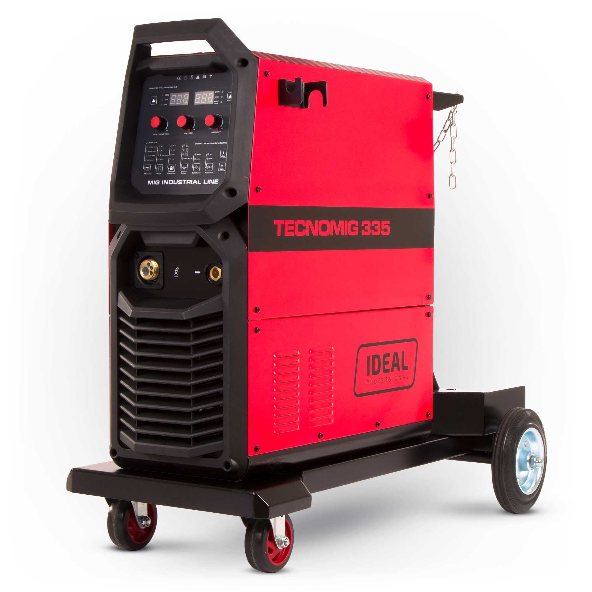 Ideal 335 został wyposażony w solidny podajnik, odlewany ciśnieniowo z aluminium. Przeznaczony do pracy pod dużym obciążeniem i wyposażony w 4 rolki prowadzące. Spawarka z serii INDUSTRIAL LINE przeznaczona jest nie tylko do prac warsztatowych, ale również do zastosowań przemysłowych.