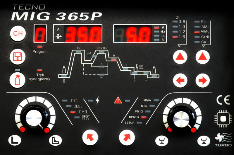IDEAL Tecno MIG 365 P posiada programy synergiczne, dzięki którym błyskawicznie można dostosować parametry spawania do wybranego materiału.