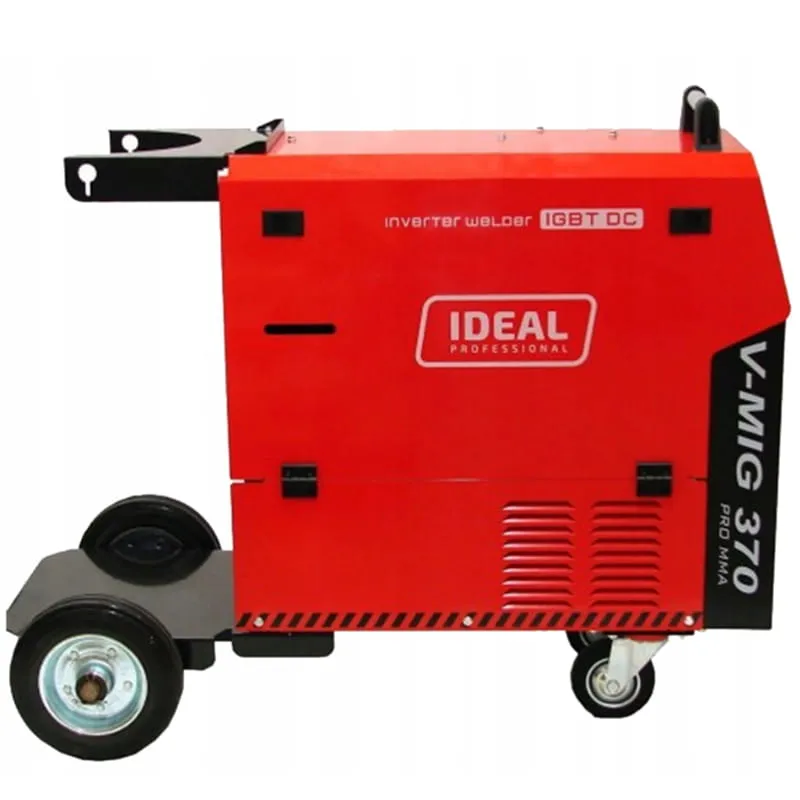 PÓŁAUTOMAT SPAWALNICZY SPAWARKA IDEAL V-MIG 370 4x4 DIGITAL MMA MIG MAG - to profesjonalny inwertorowy półautomat spawalniczy do spawania metodą MIG-MAG drutem spawalniczym w osłonie gazu oraz metodą MMA. Średnica drutu spawalniczego 0,6-1,2mm. Podajnik drutu 4-rolkowy.