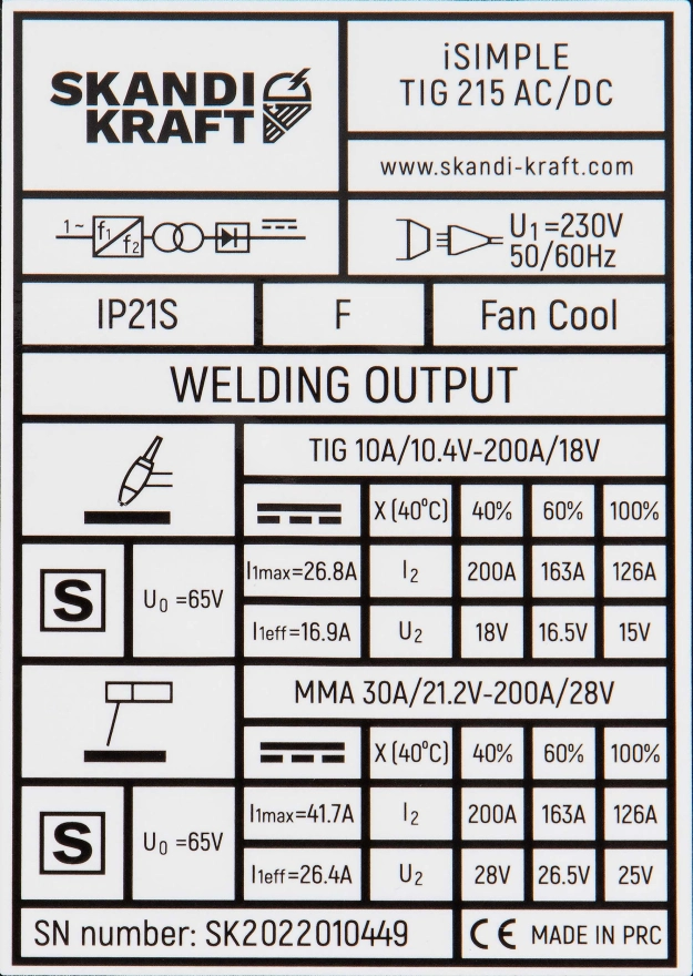 SKANDI KRAFT iSIMPLE TIG 215 AC/DC