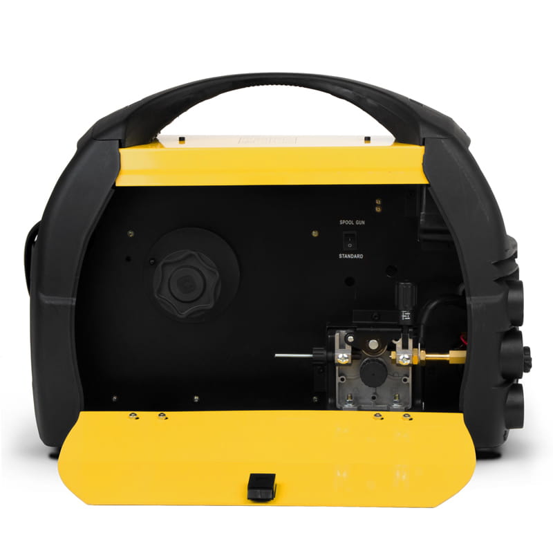 SPOOL GUN - uchwyt spawalniczy z wbudowanym podajnikiem drutu. Znajduje zastosowanie głównie w warsztatach samochodowych i przy spawaniu cienkich blach, doskonale sprawdza się w trudno dostępnych miejscach i na wysokościach. Szpula z drutem spawalniczym umieszczona jest w rękojeści uchwytu. Uchwyt posiada standardowe przyłącze typu EURO i wtyk sterujący.