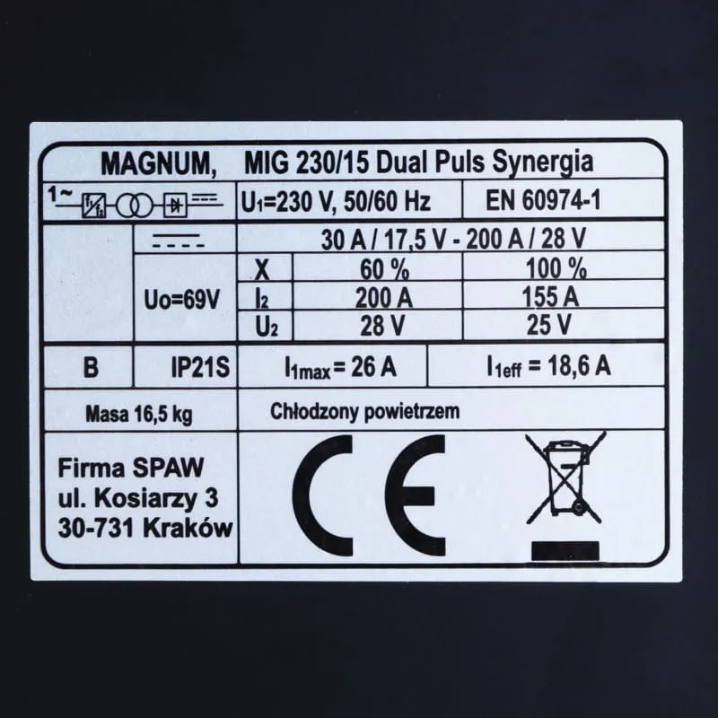 - Spawarka Magnum MIG 230/15 Dual Puls Synergia x 1 szt.