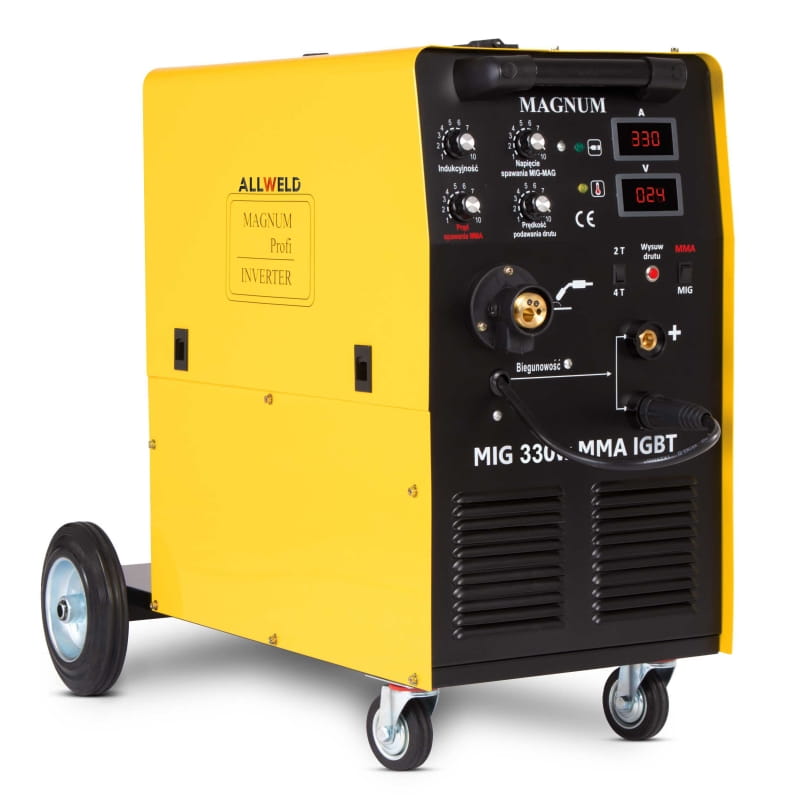 Spawarka Magnum MIG 330W MMA jest to profesjonalny półautomat spawalniczy przeznaczony do ręcznego, elektrycznego spawania stali niskowęglowej, niskostopowej (MAG), stali stopowych (MIG) oraz aluminium i jego stopów. Model MIG 330 W to sprawdzona konstrukcja oparta na tranzystorach IGBT ceniona jest za swoją bezawaryjność. Spawarka umożliwia lutospawanie, prąd spawania 330 A w cyklu 60%.