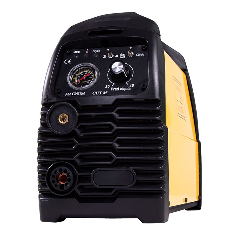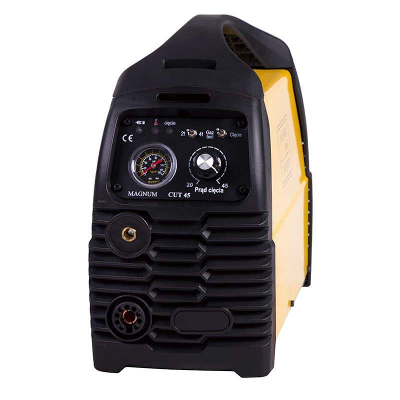 Przecinarka plazmowa MAGNUM CUT 45 to urządzenia inwertorowe, produkowane z najbardziej zaawansowanych technologicznie podzespołów wykonanych w technologii IGBT. Zastosowanie techniki inwertorowej spowodowało znaczne zmniejszenie wymiarów oraz masy urządzeń. Specjalne wyposażenie palnika umożliwia cięcie w miejscach trudnodostępnych i we wszystkich możliwych pozycjach. Przecinarka plazmowa MAGNUM tnie każdy materiał przewodzący prąd: stal, aluminium, miedź, stal nierdzewna i inne.