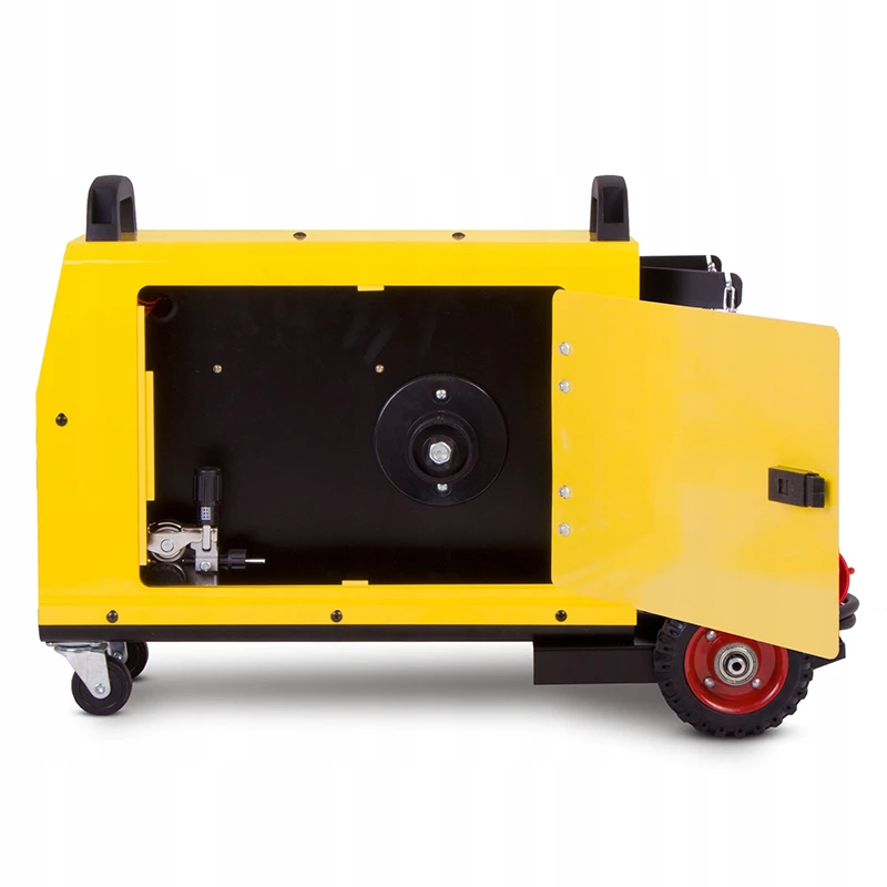PODWOZIE NA KOŁACH - spawarka posiada demontowalne podwozie jezdne. Z przodu dwa koła skrętne a z tyłu koła na łożyskach. Półka przystosowana na małe butle gazowe.