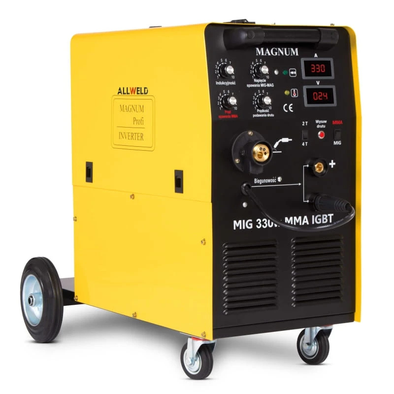 Spawarka Magnum MIG 330W MMA jest to profesjonalny półautomat spawalniczy przeznaczony do ręcznego, elektrycznego spawania stali niskowęglowej, niskostopowej (MAG), stali stopowych (MIG) oraz aluminium i jego stopów. Model MIG 330 W to sprawdzona konstrukcja oparta na tranzystorach IGBT ceniona jest za swoją bezawaryjność. Spawarka umożliwia lutospawanie, prąd spawania 330 A w cyklu 60%.