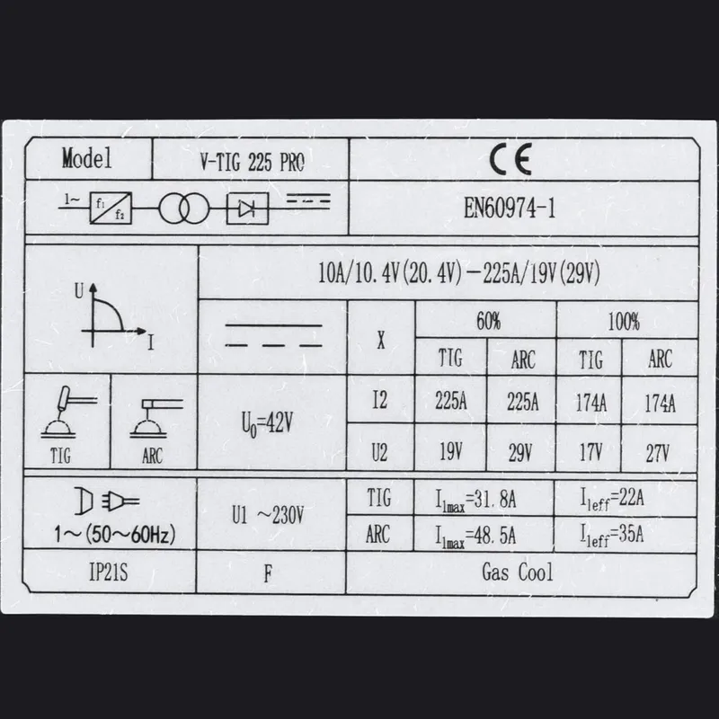 | PRĄD SPAWANIA TIG [A] | 10-225 |