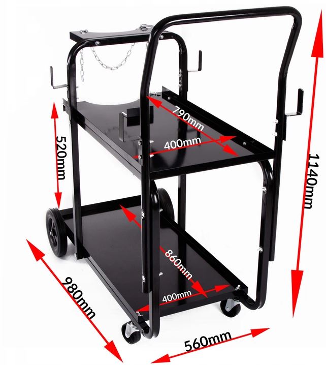 Wózek spawalniczy MIG MAG TIG Czarny 2 półki