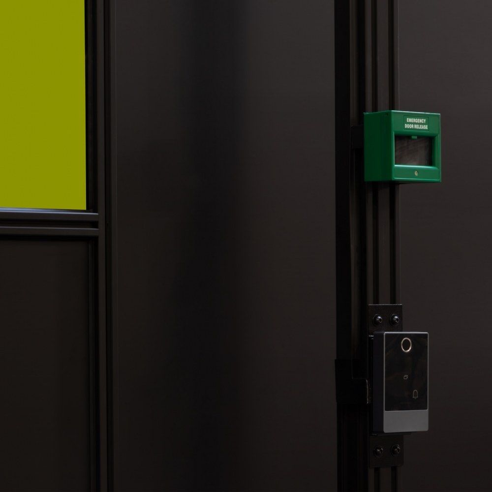 Bezpieczeństwo pracy z laserem wymaga ścisłej kontroli osób przebywających w pobliżu. System SPARTUS oferuje autoryzowany dostęp poprzez czytnik linii papilarnych, kod PIN lub dedykowaną aplikację mobilną. Wewnątrz celi znajduje się centralna szafka elektryczna oraz przyciski bezpieczeństwa, które pozwalają na natychmiastowe przerwanie pracy w sytuacjach awaryjnych.