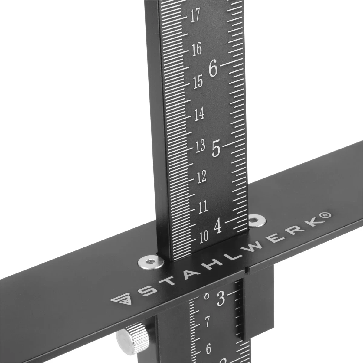 Wyraźna, czytelna skala umożliwia dokładny odczyt wartości w centymetrach i calach, a lekka konstrukcja z wysokiej jakości aluminium zapewnia trwałość, odporność na skręcanie i wygodę podczas pracy. Prowadnica wiertarska STAHLWERK jest idealna do precyzyjnego pozycjonowania otworów w drewnie, metalu, tworzywach sztucznych czy płytkach, sprawdzając się zarówno w zastosowaniach profesjonalnych, przemysłowych, jak i przy majsterkowaniu. Gwarantuje powtarzalność, precyzję i komfort pracy przy każdym projekcie wymagającym dokładnego wiercenia i oznaczania miejsc otworów.