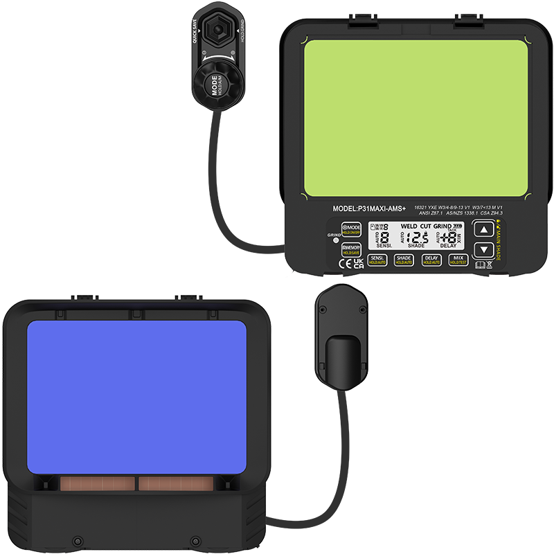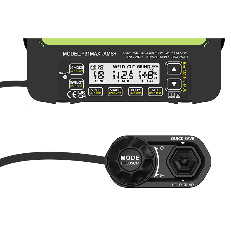 Zewnętrznie sterowane filtry z serii AMS+ ułatwiają dopasowanie ustawień filtra, takich jak: przełączanie między trybami pracy, zmianę na tryb GRIND (szlifowanie), korektę poziomu ściemnienia, włączenie funkcji AUTO SHADE oraz szybki zapis ustawień (10 miejsc zapisowych).