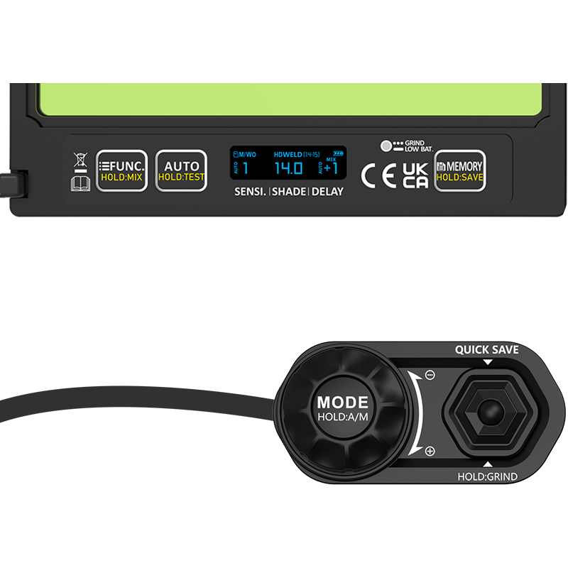 Gwarancją niezawodnej pracy jest zastosowanie czterech niezależnych sensorów wpływających na efektywność i działanie przyłbicy, szczególnie przydatne podczas spawania niskimi prądami metodą TIG. Natomiast dla większej wygody oraz eliminacji dłuższych przestojów podczas pracy, przyłbica została wyposażona w zewnętrzną regulację parametrów, które z łatwością można ustawić z poziomu panelu.