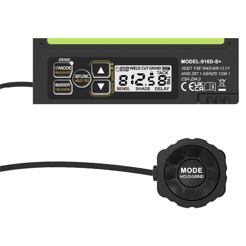 Podstawowe parametry filtra można łatwo ustawiać za pomocą panelu sterującego LCD, który pozwala na szybkie dopasowanie ustawień do warunków pracy. Filtry z serii S+ wyposażono dodatkowo w zewnętrzne elementy sterujące, umożliwiające błyskawiczne przełączanie między trybami spawania, aktywację trybu GRIND (szlifowanie) oraz szybką korektę poziomu zaciemnienia bez konieczności zdejmowania przyłbicy.