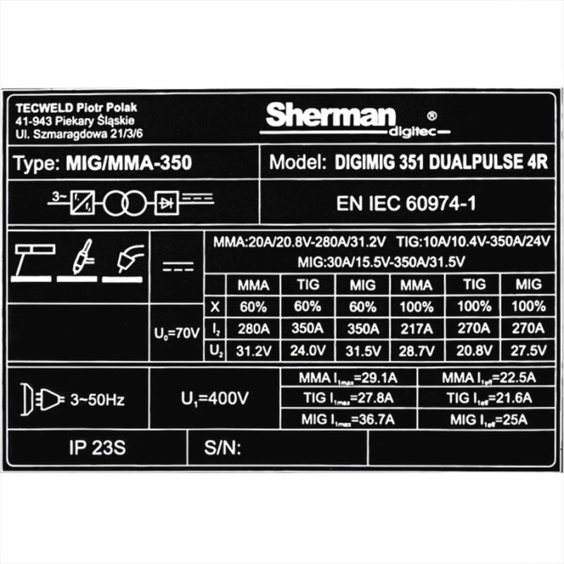 - Spawarka Sherman DIGIMIG 351 DUALPULSE 4R