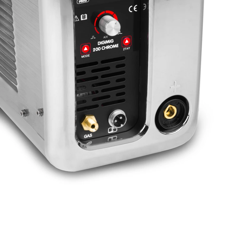 Spawarka migomat DIGIMIG 200 CHROME to zaawansowane technologicznie urządzenie przeznaczone do ręcznego spawania stali oraz metali nieżelaznych. Urządzenie umożliwia spawanie MIG/MAG, MIG/MAG z pulsem, TIG Lift oraz MMA (z wykorzystaniem elektrody otulonej). Dzięki wbudowanym programom synergicznym dla metody MIG/MAG, urządzenie automatycznie dobiera optymalne parametry spawania dla stali konstrukcyjnych (w osłonie CO₂ i gazów mieszanych), drutu samoosłonowego oraz stopów aluminium. Znacząco upraszcza to konfigurację i obsługę, co czyni spawarkę idealnym rozwiązaniem zarówno dla profesjonalistów, jak i użytkowników z mniejszym doświadczeniem.