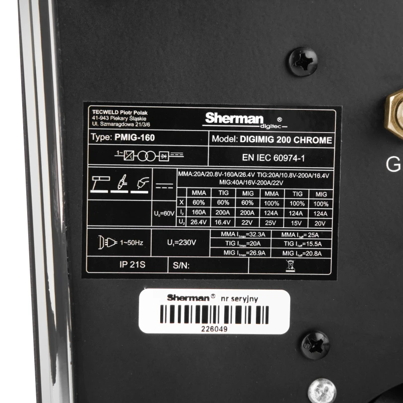 Spawarka Migomat Sherman DIGIMIG 200 Chrome MIG MAG MMA TIG - Synergia
