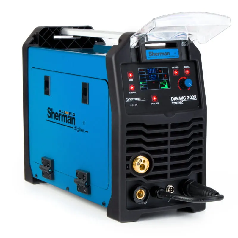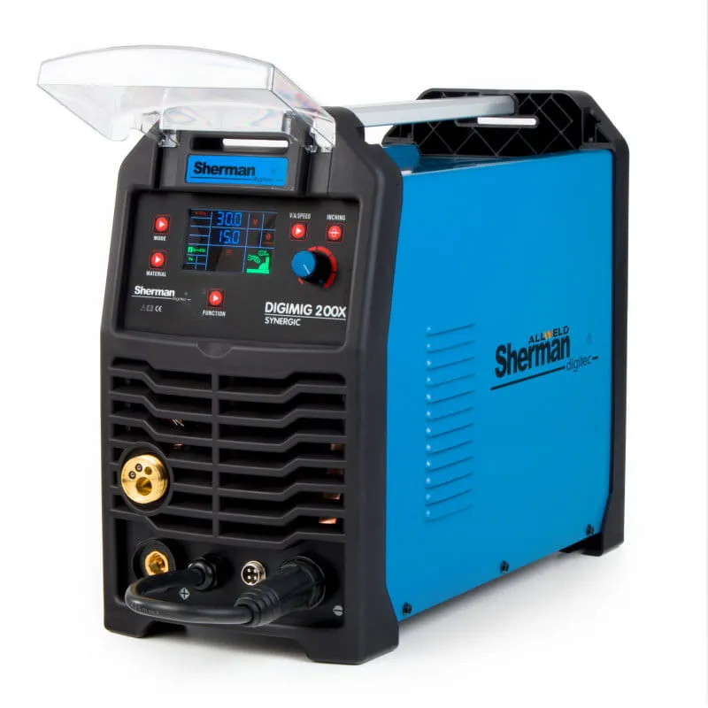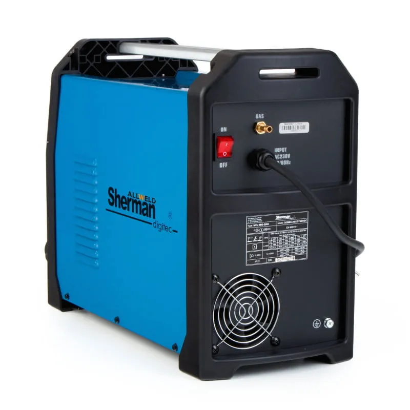 Synergiczna spawarka SHERMAN DIGIMIG 200X jest najbardziej innowacyjnym na rynku polskim urządzeniem do spawania ręcznego stali i metali kolorowych metodami MIG/MAG, MMA (elektrodą otuloną) i Lift TIG. Urządzenie stosowane może być również do lutospawania CUSI3 cienkich (do 3 mm) blach ocynkowanych.