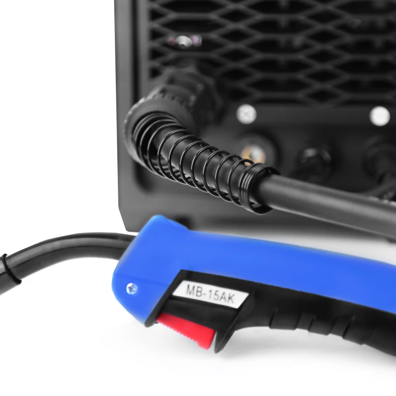 Zmiana biegunowości umożliwia spawanie drutem samoosłonowym bez użycia gazu osłonowego. Spawarka przystosowana jest do współpracy z uchwytem typu Spool Gun, wyposażonym w zintegrowany podajnik drutu, co umożliwia spawanie drutem stalowym lub aluminiowym bezpośrednio z uchwytu.