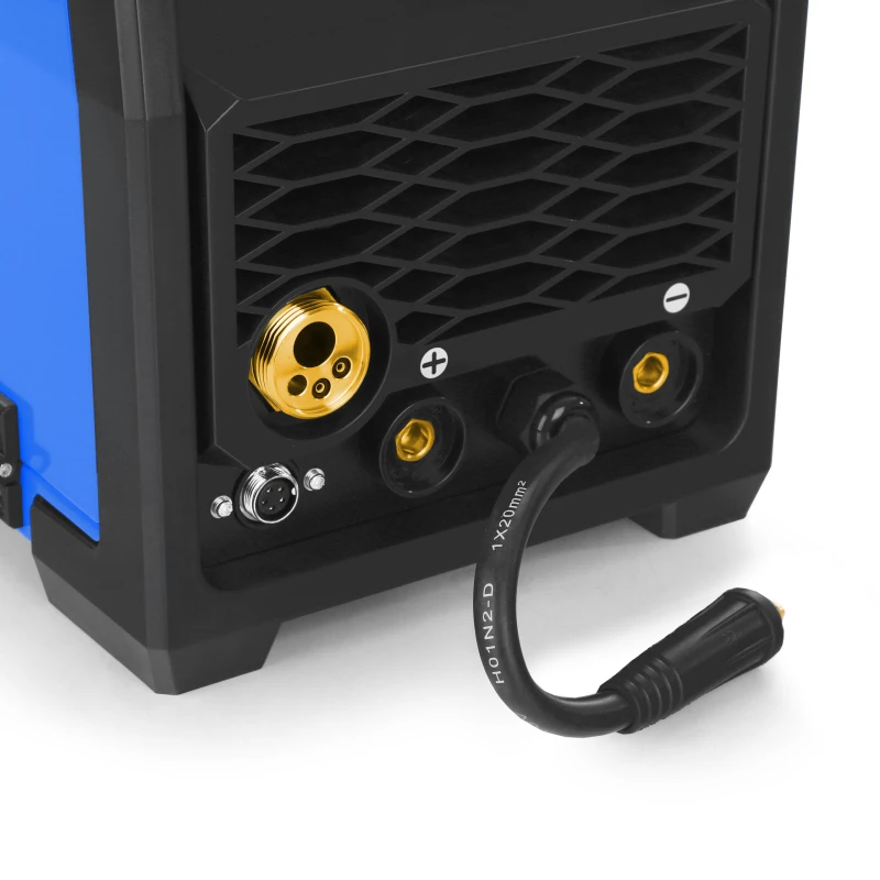 SPAWARKA 3W1 - ten model spawarki posiada dwa wtyki prądowe [+] i strong>[-] oraz zmienną biegunowość. Jest to proste i bezawaryjne rozwiązanie konstrukcyjne spotykane głównie w spawarkach inwertorowych. Umożliwia spawanie MMA oraz podłączeniu uchwytu TIG z zaworkiem, gdzie gaz jest sterowany w rączce poza urządzeniem.