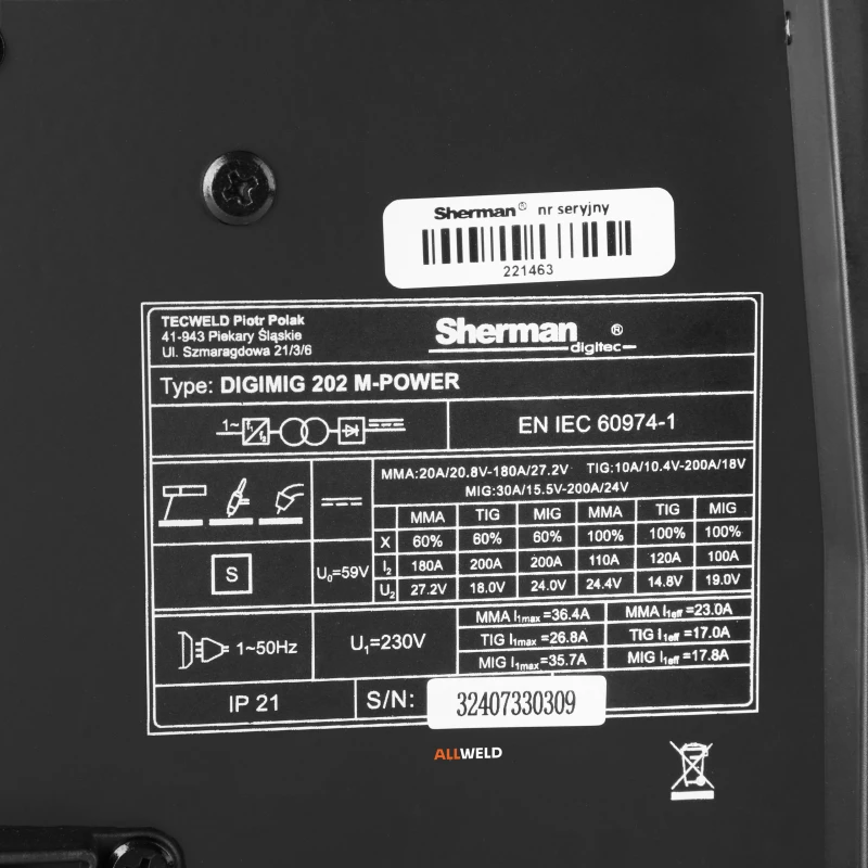 - Spawarkę Sherman DIGIMIG 202 M-POWER