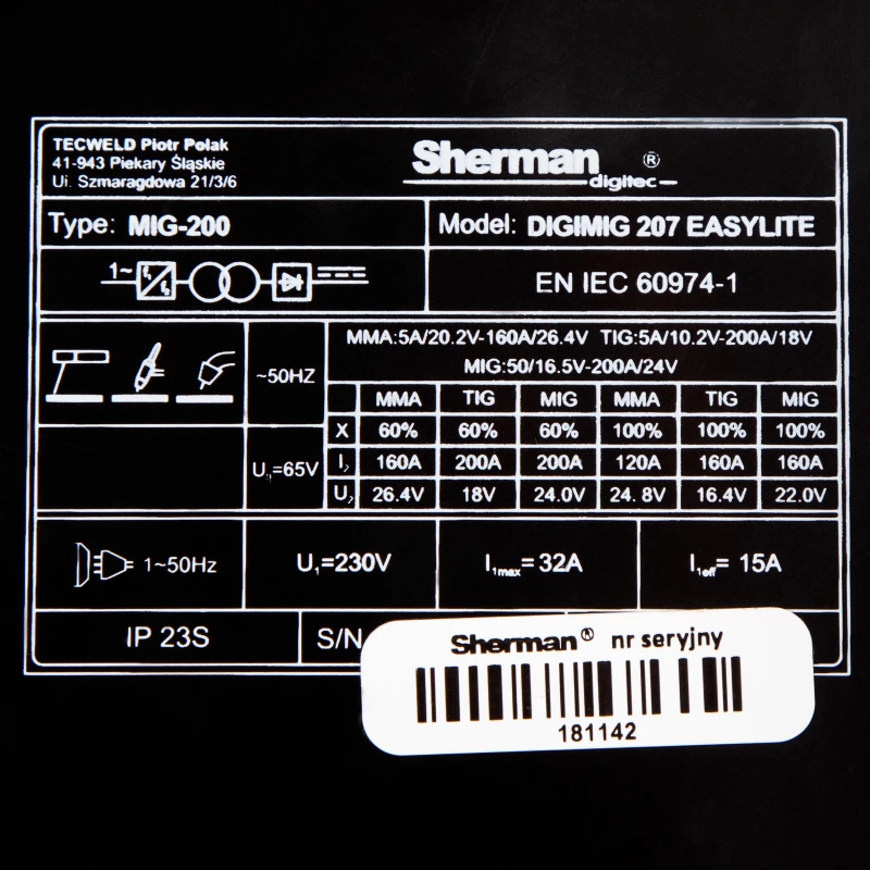 • Spawarka SHERMAN DIGIMIG 207 EASYLITE