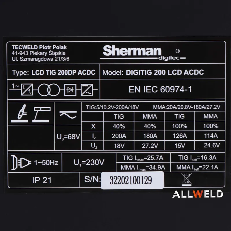 TIG Sherman DIGITIG 200 LCD ACDC - Najważniejsze Funkcje i Możliwości