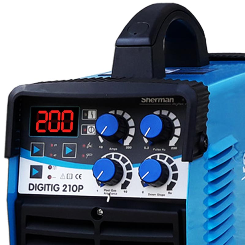 Spawarka DIGITIG 210P jest cyfrowo sterowanym urządzeniem wykonanym w najnowszej generacji technologii IGBT. Urządzenie przeznaczone jest do spawania ręcznego stali konstrukcyjnych elektrodami otulonymi (metoda MMA) oraz stali jakościowych, miedzi i jej stopów elektrodą nietopliwą w osłonie gazu obojętnego (metoda TIG). Spawarka posiada regulowaną funkcję ARC FORCE oraz możliwość regulacji częstotliwości pulsu, czasu opadania prądu i powypływu gazu. Urządzenie pracuje w trybie 2T/4T oraz posiada wyświetlacz wskazujący parametry spawania. TIG DC DIGITIG 210P marki SHERMAN jest przeznaczony do wszelkiego rodzaju prac spawalniczych w warsztatach ślusarskich, warsztatach naprawczych, przemysłowych, fabrykach itp. Spawarka nie przegrzewa się i pozwala na prace w długich cyklach bez obawy o wyłączanie się.FILM POKAZOWY SHERMAN DIGITIG 210P
