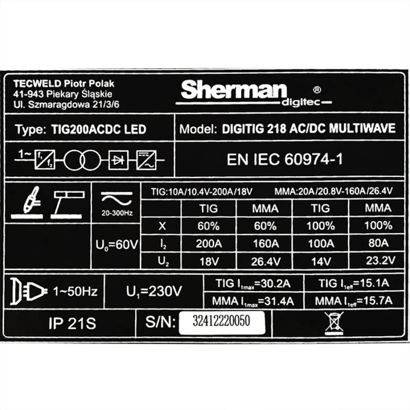 Spawarka Sherman DIGITIG 218 AC/DC Multiwave - 3 Kształty Fali, Puls, Zdalne Sterowanie