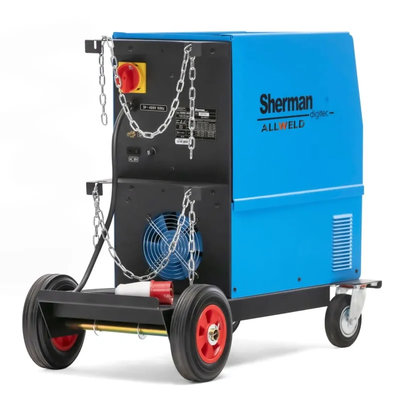 Najwyższej klasy spawarka marki Sherman, w której zastosowano najlepsze i sprawdzone technologie oraz rozwiązania. Podawanie drutu realizuje cztero-rolkowy mechanizm podający (4x4) zapewniający stabilność procesu spawania nawet przy długich uchwytach spawalniczych. Urządzenie znajdzie  zastosowanie w ciężkich warunkach produkcyjnych  (przemysłowych) jak i w warsztatach naprawczych. Źródło daje możliwość spawania metodą MIG/MAG, MMA, TIG DC prądem maksymalnym 360A w 60% cyklu pracy.