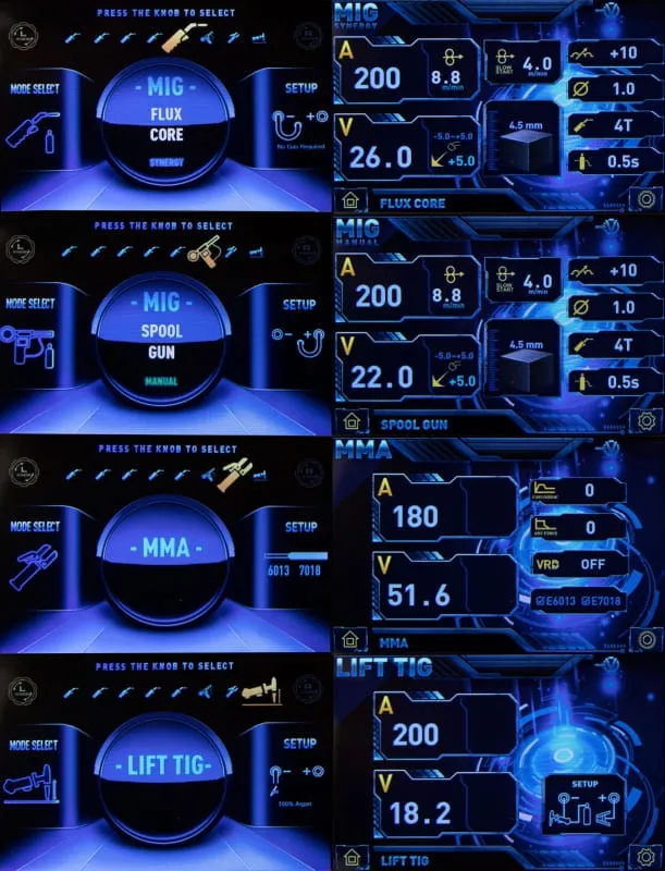 Najnowszej generacji kolorowy wyświetlacz LCD pomaga nam łatwiej ustawić spawarkę. Szybko i bez problemu możemy ustawić napięcie prądu i ekspresowo zarządzać funkcjami urządzenia. Dodatkowo wyświetlacz w momencie korekty podpowiada kształt spoiny oraz graficznie rekomenduje wybór grubości materiału dla danego prądu.