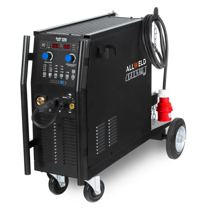 Spawarka SPARTUS EASYMIG 320 to spawarka 3w1, którą można użyć do spawania metodami MIG/MAG, MMA (elektroda otulona) i TIG DC (z zajarzeniem dotykowym LIFT). Urządzenie pozwala na spawanie prądem maksymalnym 300A, zapewniając doskonałej jakości spoinę.