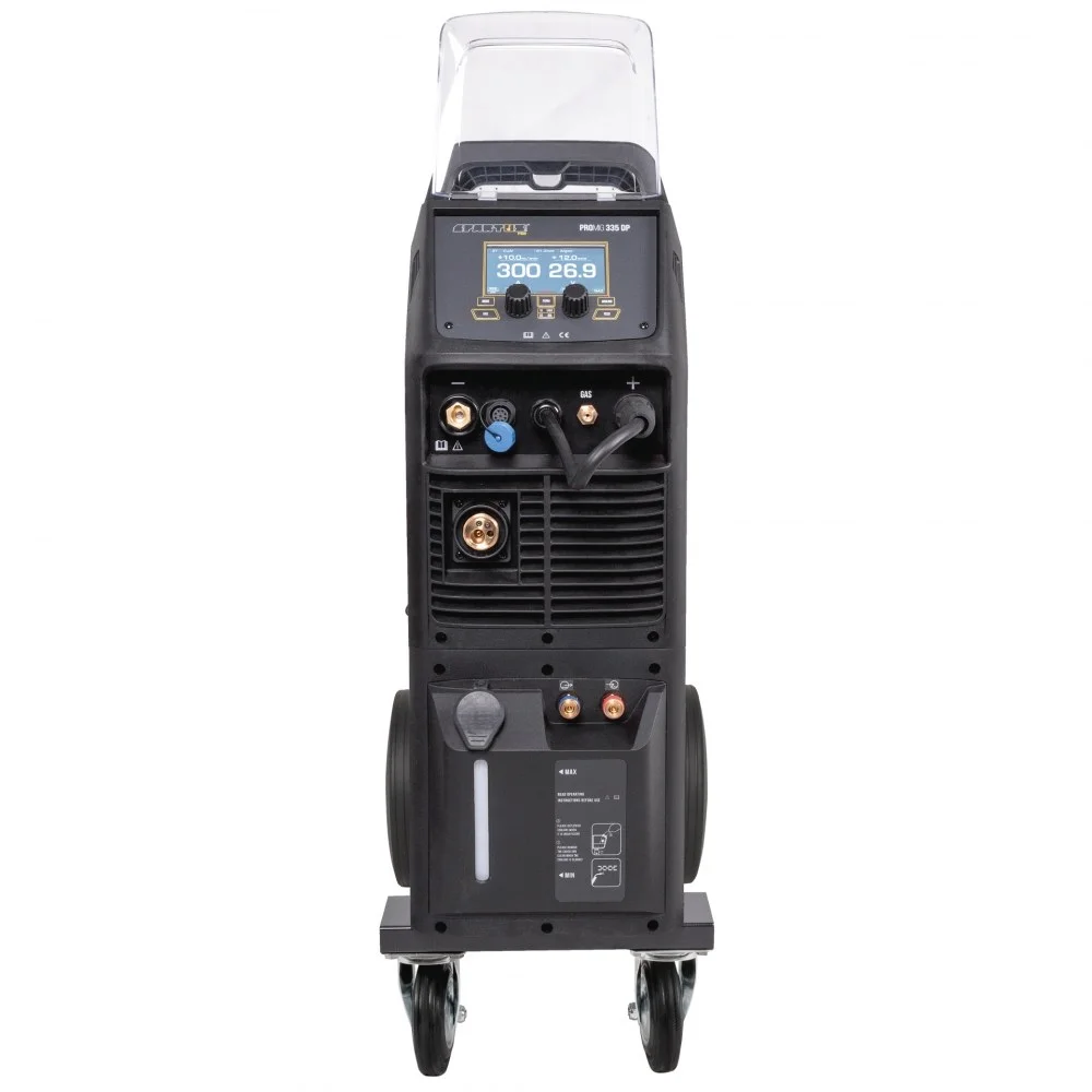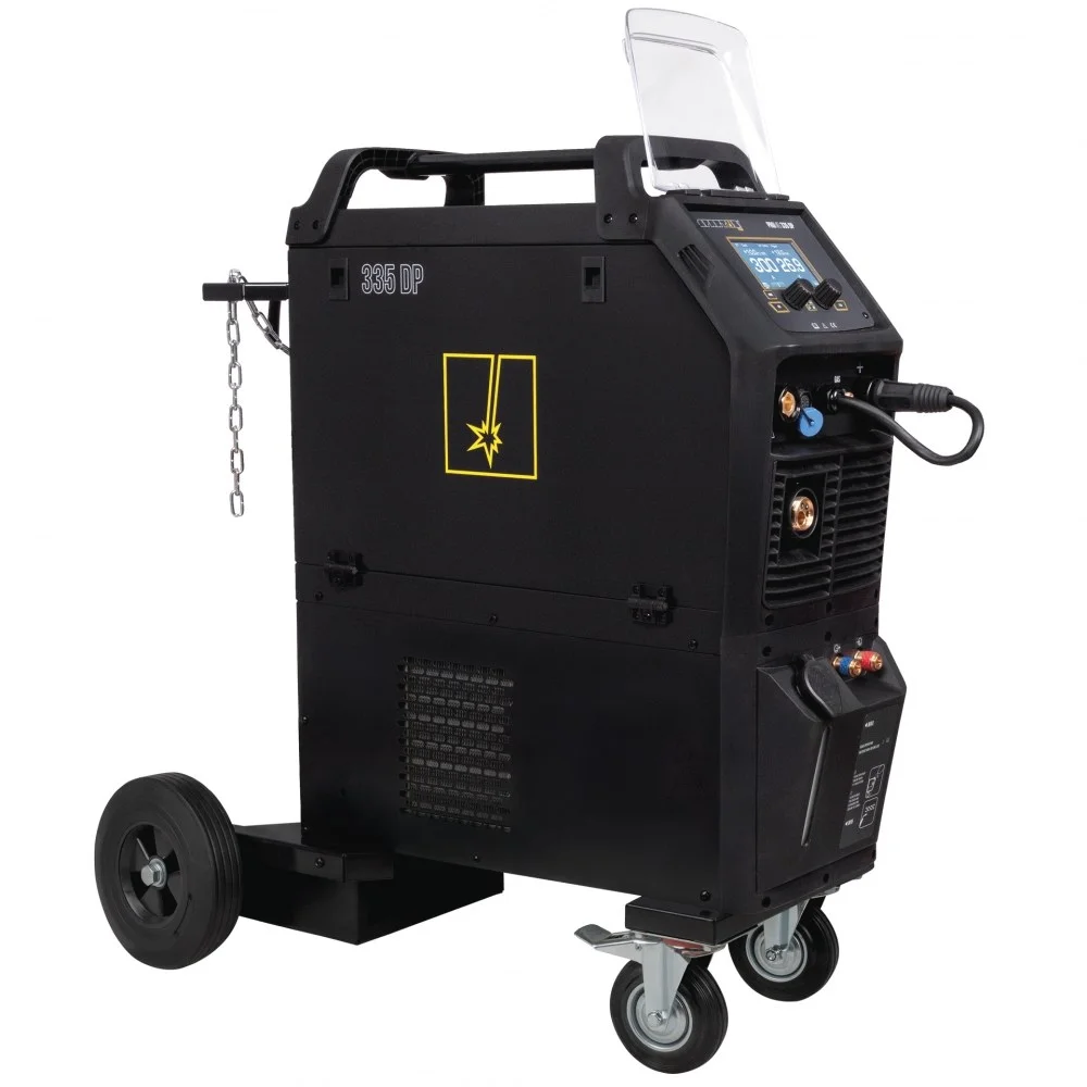 Spartus ProMIG 335 DP to inwertorowa spawarka MIG/MAG, TIG Lift i MMA z najwyższej linii Pro u producenta. Zaprojektowana dla dużych warsztatów i zakładów produkcyjnych. Zasilana trójfazowo (400V), oferuje zakres prądu spawania od 20 do 300A (MIG) przy 60% cyklu pracy, dzieki czemu jest dealna do spawania stali, aluminium i lutospawania nawet o bardzo małych przekrojach. Urządzenie wyposażono w precyzyjne synergiczne programy dla drutów 0,8–1,2 mm automatycznie optymalizują parametry, oraz tryb manualny zapewniający pełną kontrolę. Migomat dzięki zaawansowanym funkcjom Pulse i Dual Pulse daje bardzo precyzyjną kontrolę nad jeziorkiem spawalniczym, minimalizują odpryski. Posiada on pełne regulacje prądu i gazu - specjalne funkcje s2T, s4T, SPOT (punktowe), regulację indukcyjności i 10 kanałów pamięci. 335 DP to źródło z 4-rolkowym podajnikiem, chłodnicą cieczy w obudowie typu Tower i z wózkiem transportowym - doskonały wybór dla wymagających i intensywnych prac.