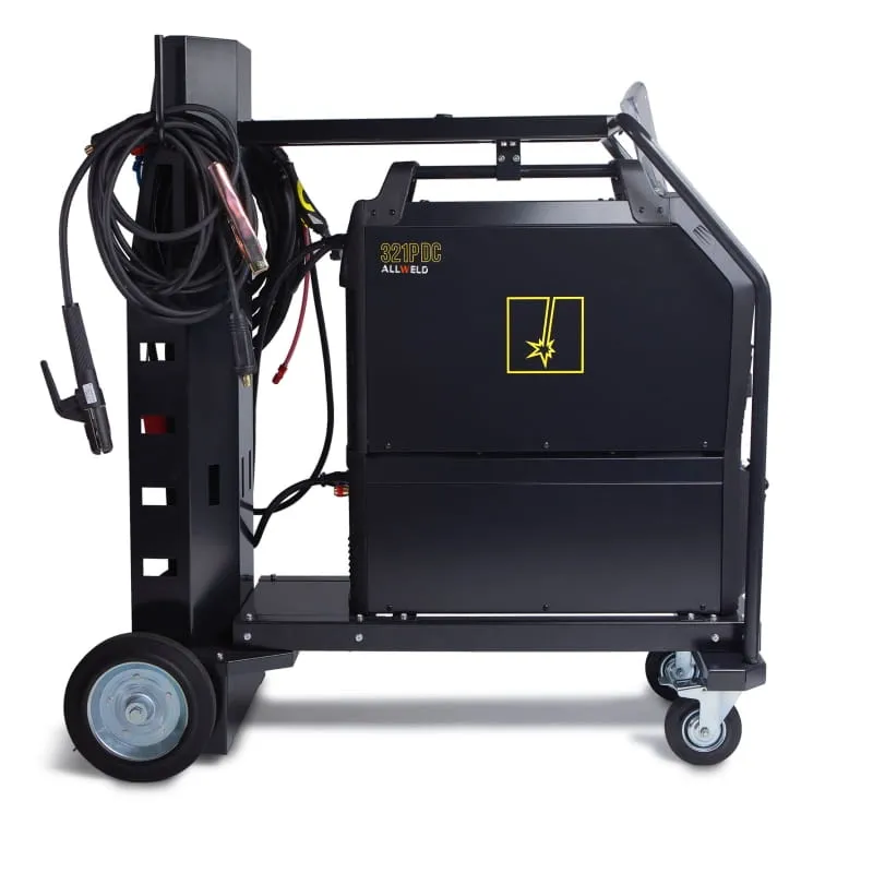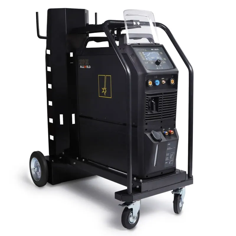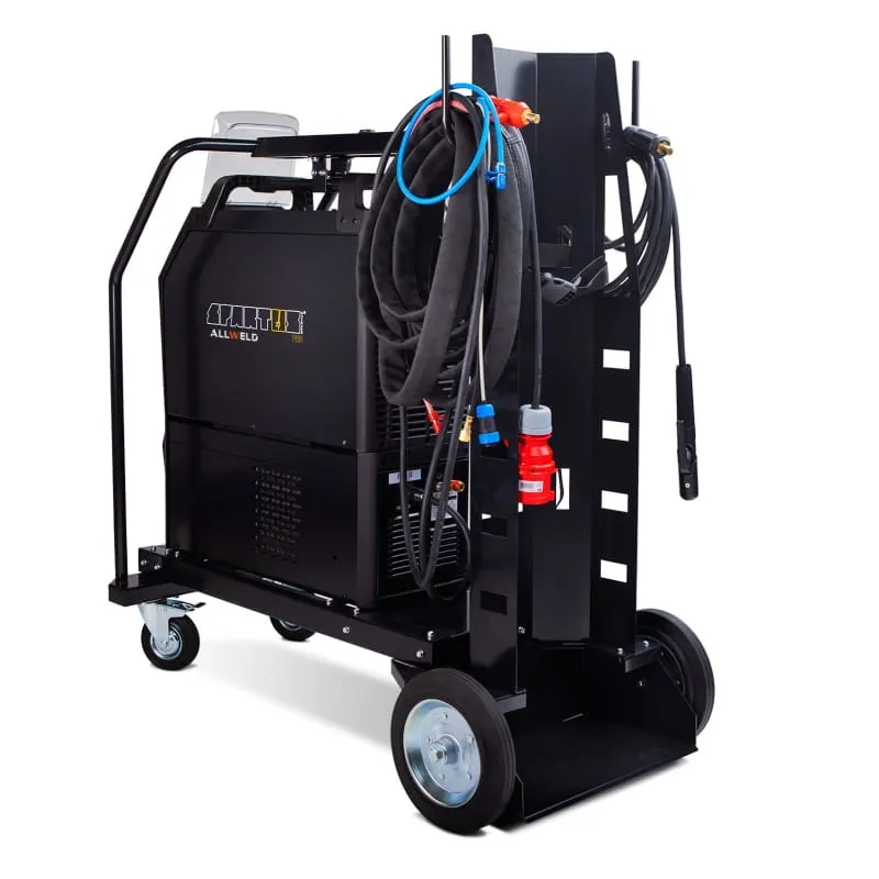 PODWOZIE JEZDNE - urządzenie wyposażono podwozie jezdne, które gwarantują dużą mobilność i możliwość przemieszczania spawarki w łatwy sposób. Podwozie pozwala też na zamontowanie butli z gazem, bez konieczności inwestowania w wózek spawalniczy.