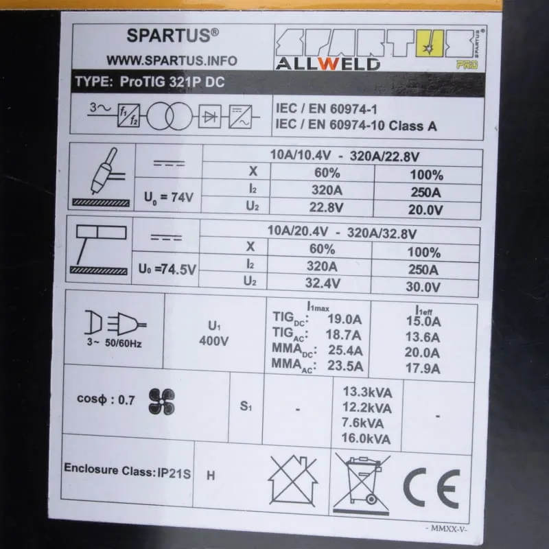 Jest to urządzenie zaprojektowane i wyprodukowane z myślą o ciężkich warunkach przemysłowych. Spartus PRO TIG 321 P umożliwia spawanie metodami TIG DC oraz MMA prądem spawania w zakresie od 10 do 320 A. Urządzenie posiada wysoki 60% cykl pracy i zasilane z sieci trójfazowej 400V. Urządzenie wyposażone jest Puls, czytelny wyświetlacz LCD oraz niezwykle przydatne w tego tupu urządzeniach - kanały pamięci.