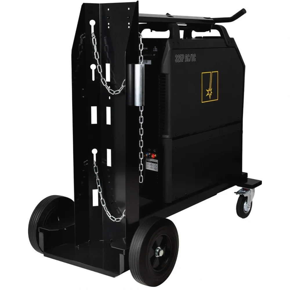 Podwozie jezdne z dużymi, gumowanymi kołami i ergonomicznym uchwytem gwarantuje doskonałą manewrowość. Wytrzymała półka z łańcuchowym zabezpieczeniem butli (małych i dużych) zapewnia stabilność i bezpieczeństwo podczas transportu. Całość, ważąca ok. 77 kg, spełni oczekiwania profesjonalistów w warsztatach, halach produkcyjnych i na placach budowy.