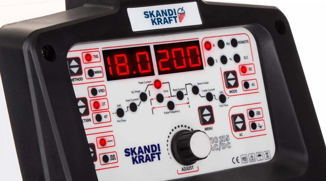 Drabinka TIG w panelu starowania na przykładzie spawarki Skandi Kraft TIG 215 AC/DC